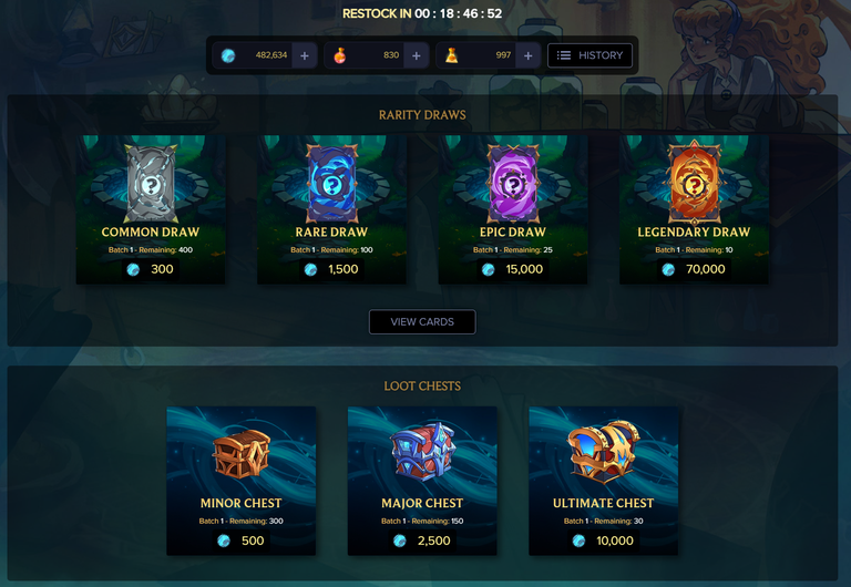 These are the rewards that I am most interested - Rarity Draws and Loot Chests. You can also purchase resources but at this point in time, I would rather focus on the Draws and Chests.