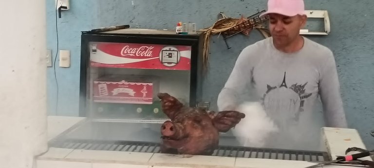 My husband cooked a dish we make in Cuba, and the charcoal-grilled pork was very tasty, at least according to the participants in the celebration.