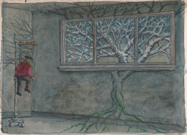 The marionette. Where did it come from? Already here when you arrived? Does anyone other than you even see it? Yesterday one of the nurses glanced in its direction, stared, shrugged, then continued making beds. For the most part it remains silent except, in the middle of the night, it emits faint sounds of a harpsichord.