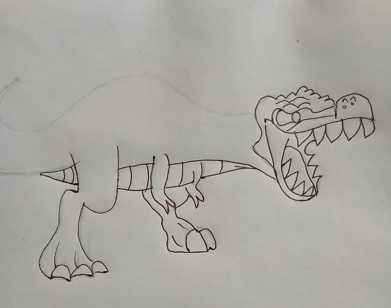 After sketching I have outline it with the black pen. And started with the face and then all the way up to the tail.