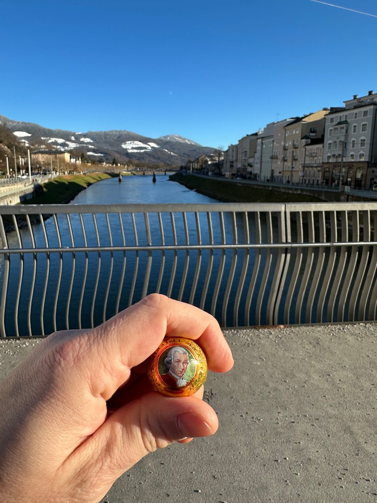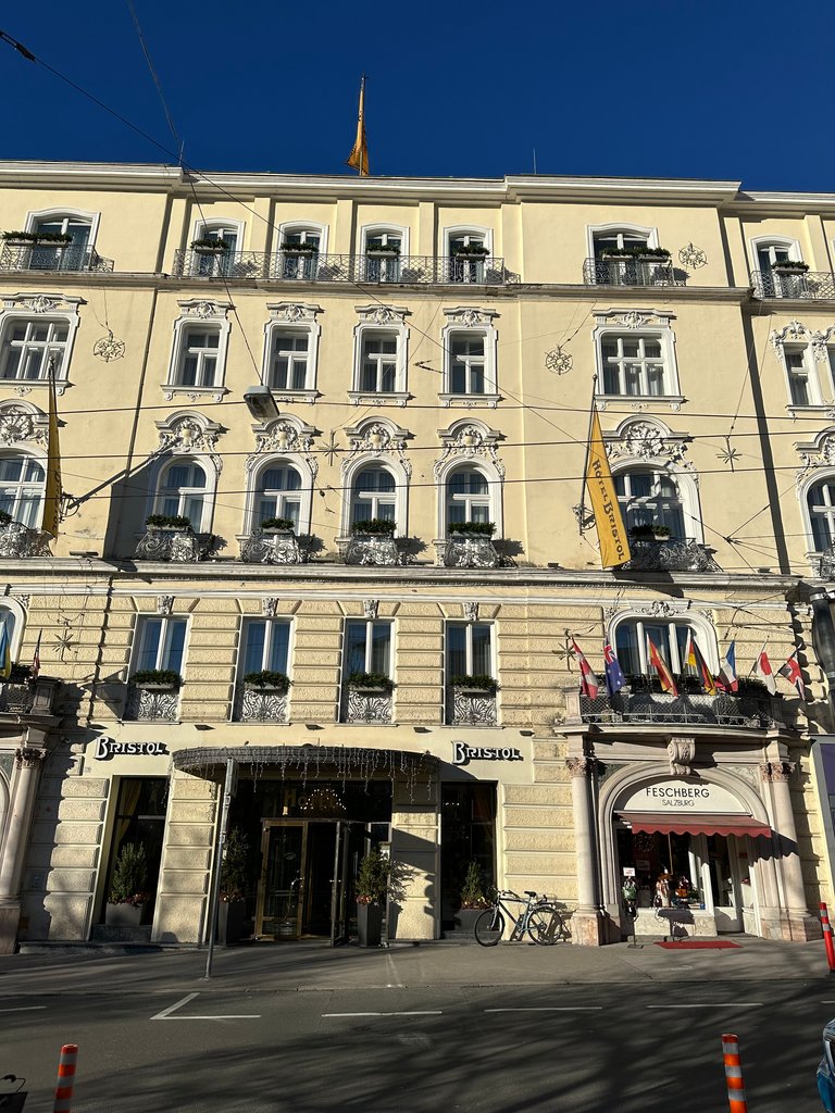 We got off directly at the Hotel Sacher, one of the best hotels in town, complete with its own café. Practically next door, we visited the house where Mozart, the city's most famous son, lived. Even here, on the edge of the old town, the architecture was impressive. Wonderful old houses, all in excellent condition. This was also the pedestrian zone, where we immediately stocked up on Mozartkugeln, the city's signature delicacy. From here, we also had a great view of Salzburg Fortress, which was also on our itinerary for the day.