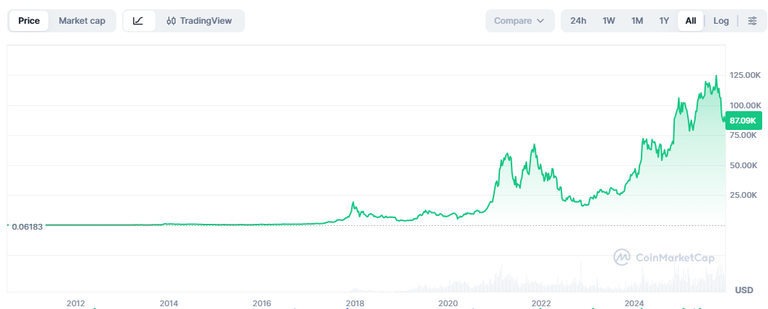 This all time graphic for Bitcoin tells the true tail. Up up up she goes.