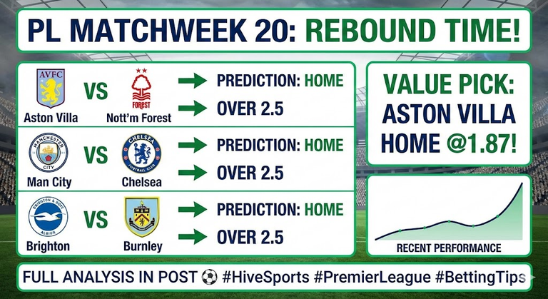 💎 The Value Play: Aston Villa (vs Nott'm Forest) This is the anomaly of the week. Villa sits 3rd with strong home metrics (2.28 xG), yet the bookies are offering 1.87 against a 17th-placed Forest. We are capitalizing on what looks like a market overreaction to Villa's recent form.