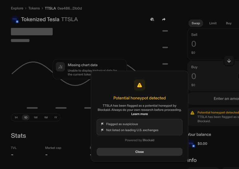 Buy TTSLA on LeoDex before it is gone -> https://leodex.io/?in_asset=BASE.USDC-0X833589FCD6EDB6E08F4C7C32D4F71B54BDA02913&out_asset=BASE.TTSLA-0xe4868a135c8e1e21ffb5f611f5104ac9d492db0d&ref=ahi&in_amount=100