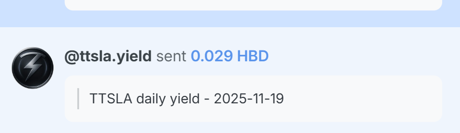 Received my TTSLA yield. Had to change the yield preference to HBD for more TGLD before the 7-day presale window ends.