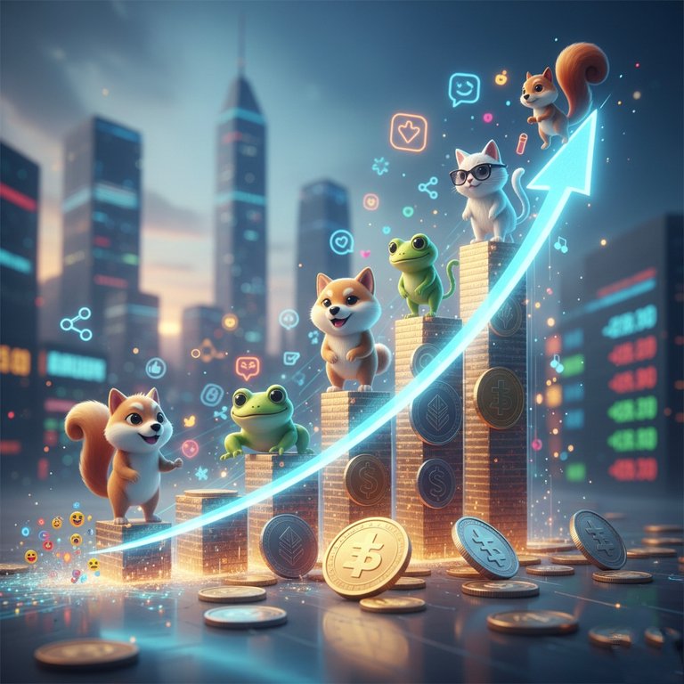 In the last few years, meme coins have created a completely different place in the crypto world. Where before people used to talk only about coins like #Bitcoin or #Ethereum, now there are coins named after dogs, cats, frogs and even squirrels. The interesting thing is that these coins often reach a market cap of one billion dollars in a very short time.