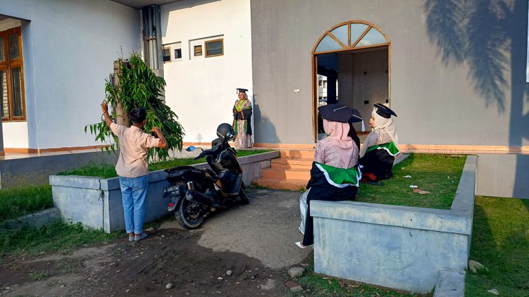 Oh yes, my partner is studying at a university in Bireuen Regency called Al-Muslim, and October 27th is the day of his graduation. In front of the Bireuen Regent's office, it turns out that there are already lots of students celebrating, 99% of them will definitely hire a photographer to immortalize their moments.