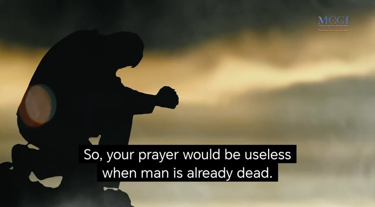 Ang pagpanalangin ay para lamang sa mga buhay at hindi para sa mga taong namatay na dahil wala itong magagawa sa kaligtasan sa mga taong namatay na lalong lalo na kung gumawa ito ng masama dahil hahatulan ito basi sa kanyang mga gawa.
