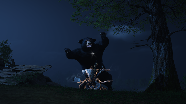 I had to quit playing for a little while, but when I jumped back in, it was nighttime. Facing that bear in the dark made the situation feel much more intense. The beast was waiting for me, and the moonlight caught its fur as we prepared for our final showdown.