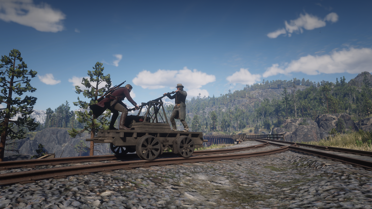 We also have the author @izuki.midoriya with his amazing moments throughout the world of RDR 2, where he has been experiencing impressive moments in the story of his favorite video game. We can see him with a character using a bass guitar to move around this immense open world with greater speed, even faster than with a horse. He has had the opportunity to take some screenshots amidst the beautiful nature of this video game, which were totally worthy of highlighting in the community.