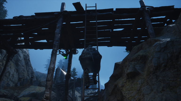 I noticed a ladder that went down into a mine site. So I climbed it down and I found a locked door there. I tried to open it up but I didn't have the record item or key to open it. So I climbed back up hoping I'd have the record items later.