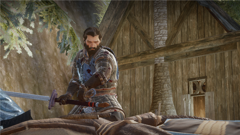 As soon as I approached, I realized it was Blackwallt, a guard I'd heard many rumors about and a skilled warrior who had fought in the great War of Ruin. But as I drew near, a group of assassins appeared out of nowhere. Blackwallt's abilities, as a Grey Warden, allowed him to detect them, and I decided to help him fight the assassins who were harassing him. From then on, we became friends.