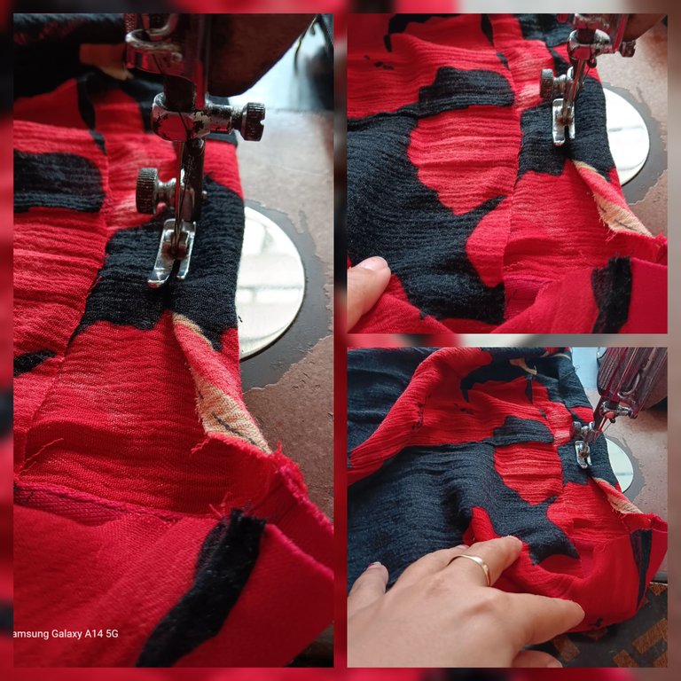 Una vez unidas todas las piezas, paso una costura recta por todo el tiro y una puntada en zic zac para los margenes de costura.