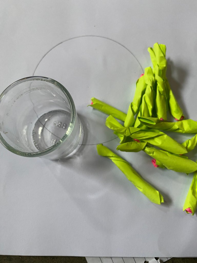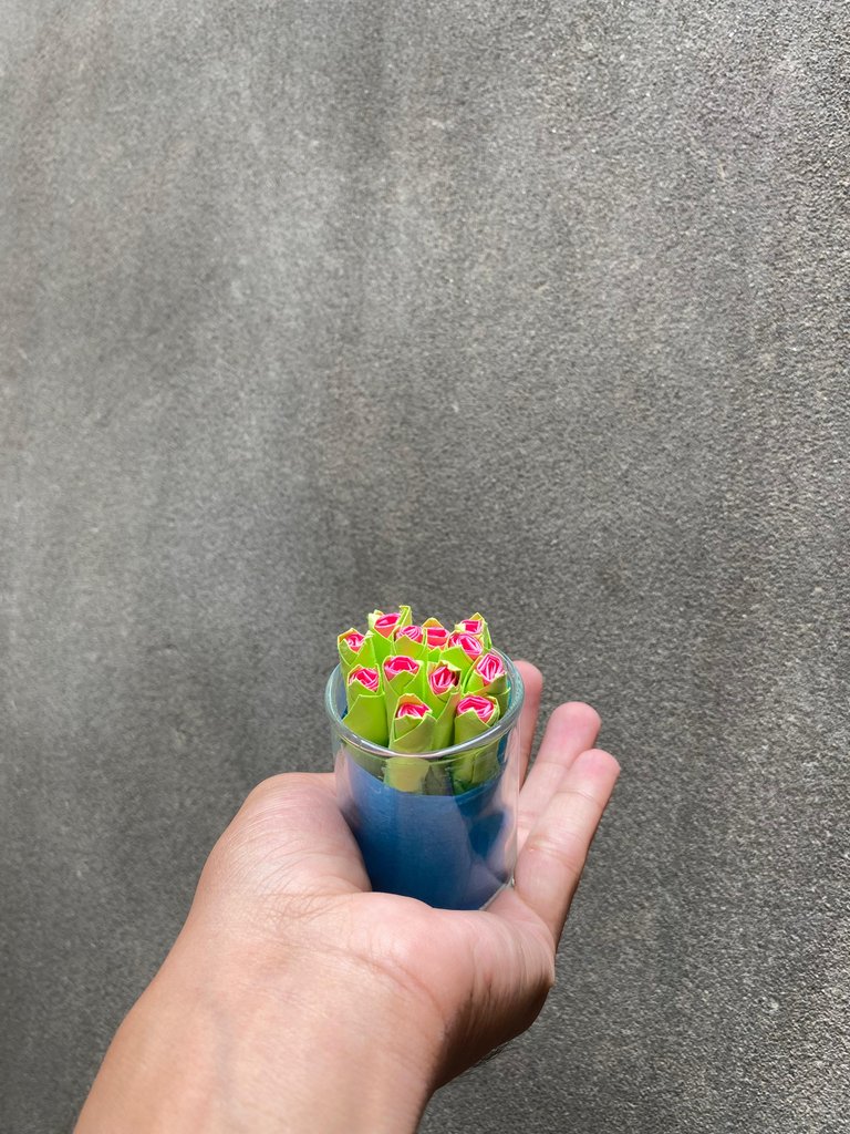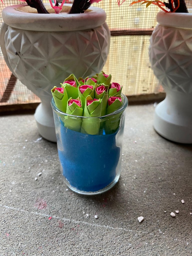 Here I had to made something in which I can satteld them first I used a different thing but then I saw a mini glass in my sisters room. It was filled with candle. I remove the candle and started to use it for my self.