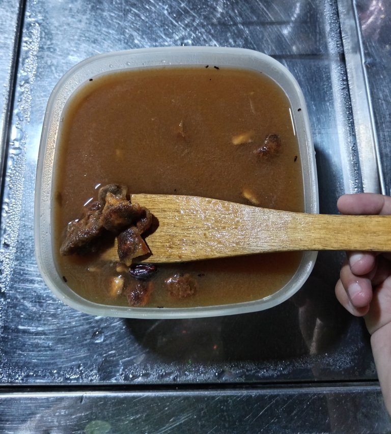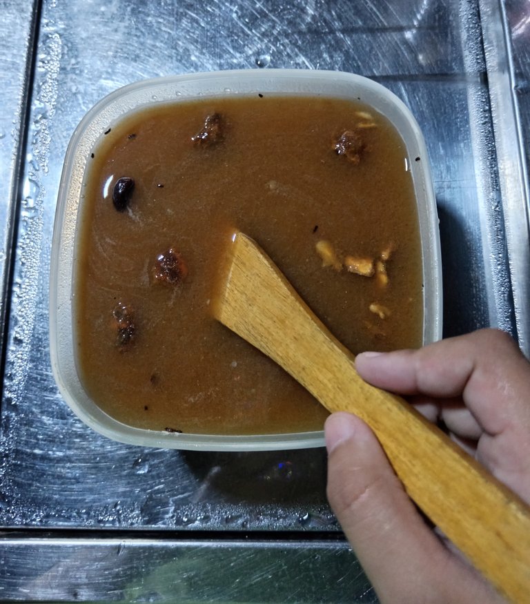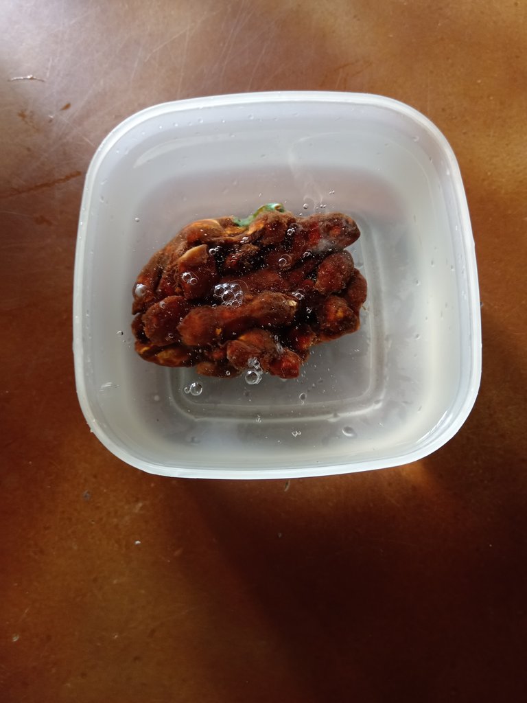 The first thing we must do is place the tamarind in the cup of water and let it soak for a while until the tamarind disintegrates well.