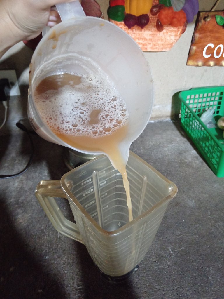 Finally, we'll put our juice in the blender to add the sugar. In this case, enough to achieve the desired consistency, since some tamarinds are acidic.