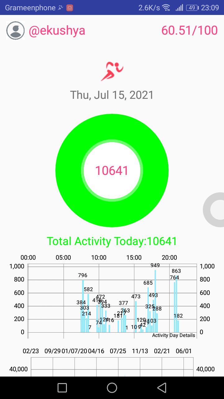 Here is my today's activity report prepared by actifit android app.