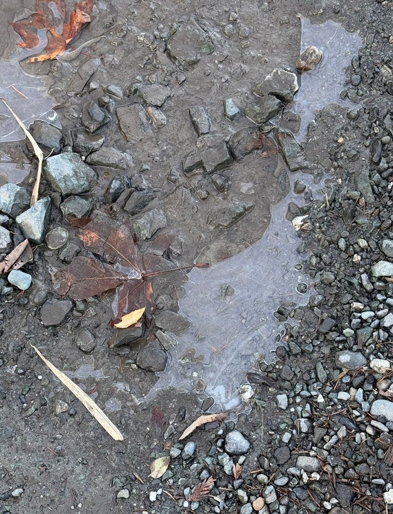 It must have gotten colder there because of the lack of trees. We found ice in the puddles.