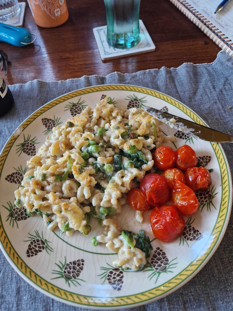 Then in the evening put some time into a delicious meal, lovely wholemeal pasta dish with fresh spinach and peas, it was lovely and very healthy!