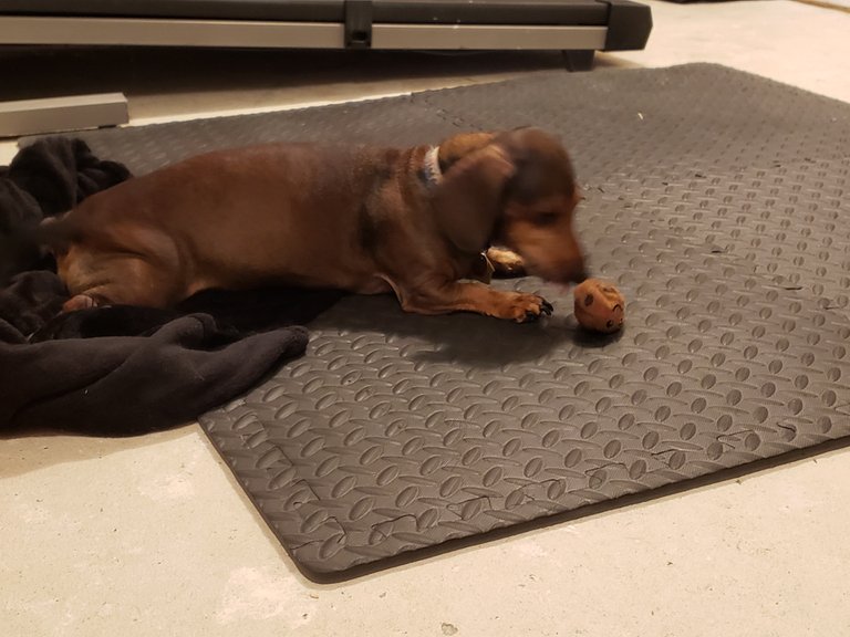 What a cutie! He's thinking you're getting in the floor to play with him. Nice job with your 9556 @actifit steps for today. Take care