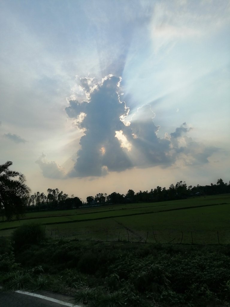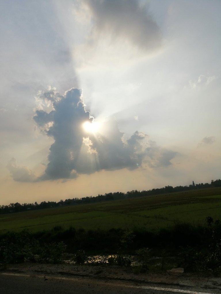 Although I walked less in the morning, I walked about one and a half kilometers in the afternoon. However, today's sky is quite different. A scene has appeared in the sky. This scene of a raft of clouds seems to be covering the sun.