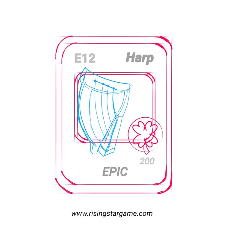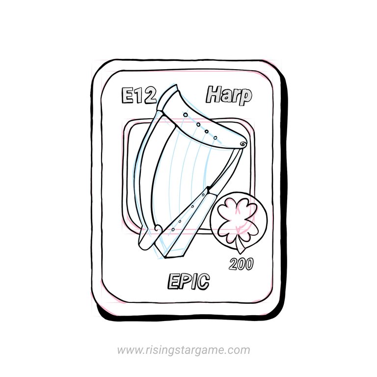 Hello friends and community, I hope you’re having a lovely day! Today we return with another fan art inspired by the Rising Star Game cards. In this case, it couldn’t be any other than the E12 Harp card, a card that, in its original design, shows a harp and has 200 Luck. It’s one of my favorite instrument cards, so today we’re going to make a redesign, just as I’ve done with other cards, but in a more colorful, cheerful, and cartoon style. We’ll be inspired by the game’s original art but give it our own touch. If you’re ready, let’s draw!