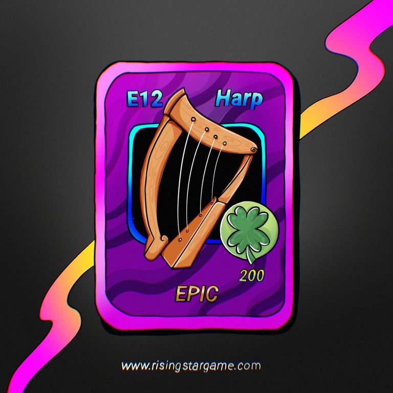 Hola amigos y comunidad, espero que estén teniendo un lindo día. Hoy regresamos con otro fan art inspirado en las cartas de Rising Star Game. En este caso no podía ser otra que la carta E12 Harp, una carta que muestra en su diseño original un arpa y tiene Luck de 200. Es de mis cartas favoritas de instrumento, así que vamos a hacer hoy un rediseño, como he hecho con otras cartas, pero en un estilo más colorido, alegre y cartoon. Nos inspiraremos en el arte original del juego, pero le daremos nuestro estilo. ¡Si están listos, vamos a dibujar!