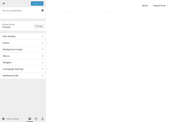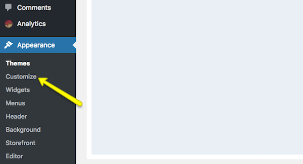 Upon activation, you’ll want to spend some time configuring your theme. You can do this under the Appearance tab and then click “Customize”.