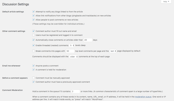 - Other comment settings: If you do want visitors to leave comments, you can set requirements on who they are as well as how comments appear.