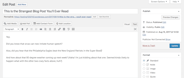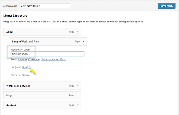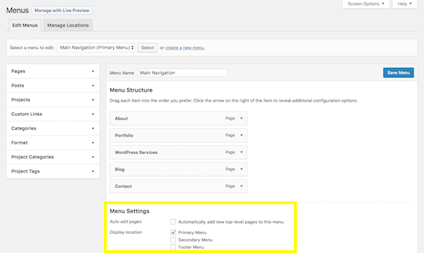 Whereas when you hit the “Publish” button on a Post and it goes straight onto your blog, a Page needs to be added to your site’s navigation (or menu) if you want it to show up.