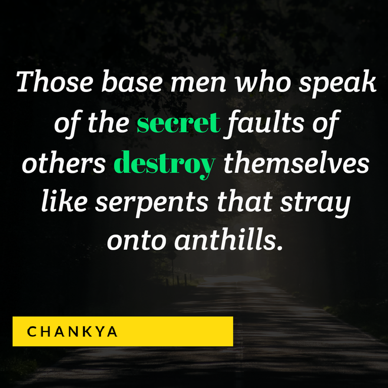 2: जो नीच व्यक्ति परस्पर की गई गुप्त बातों को दुसरो से कह देते है, वे ही दीमक के घर में रहने वाले सांप की भांति नष्ट हो जाते है। - चाणक्य नीति