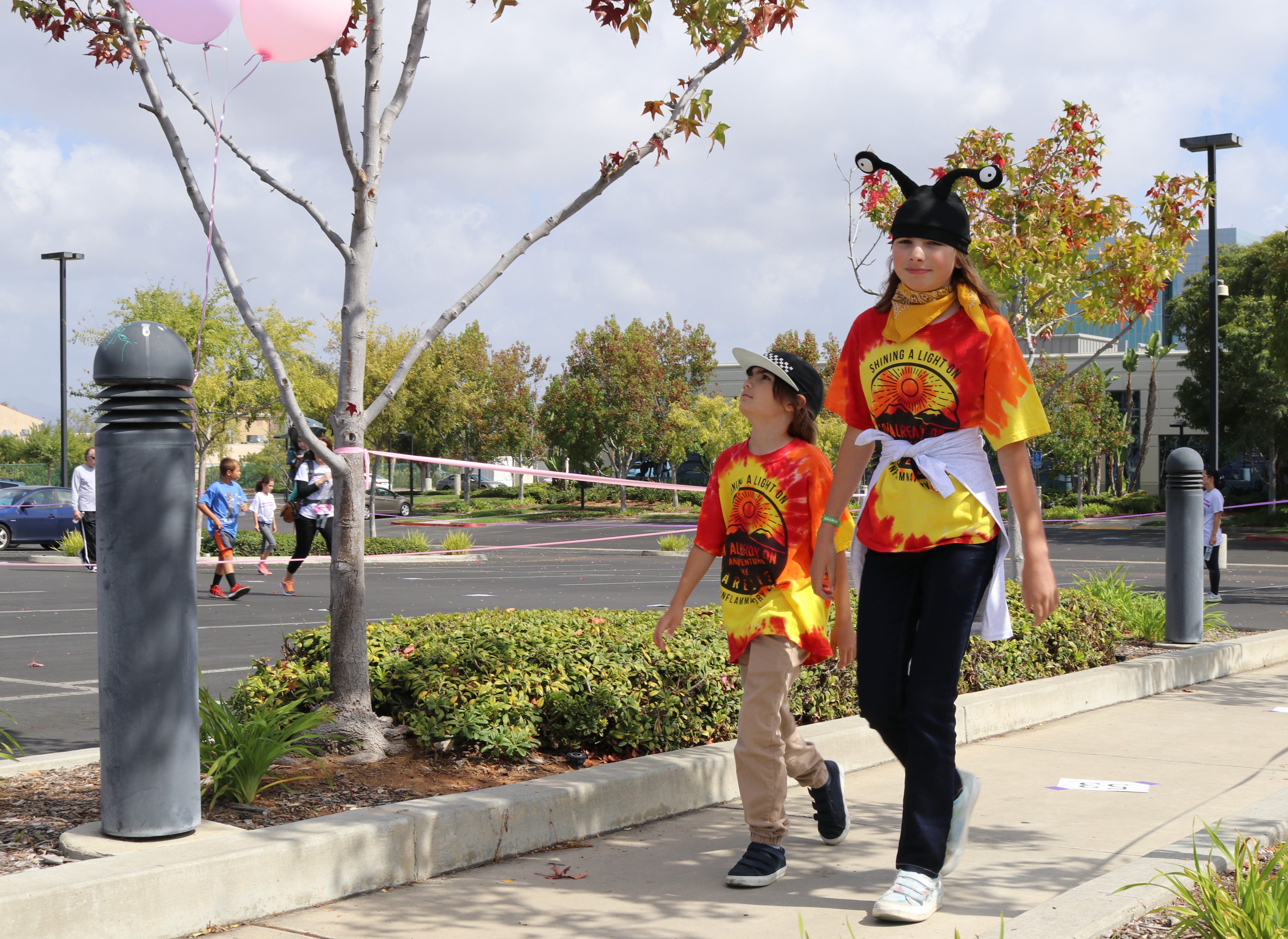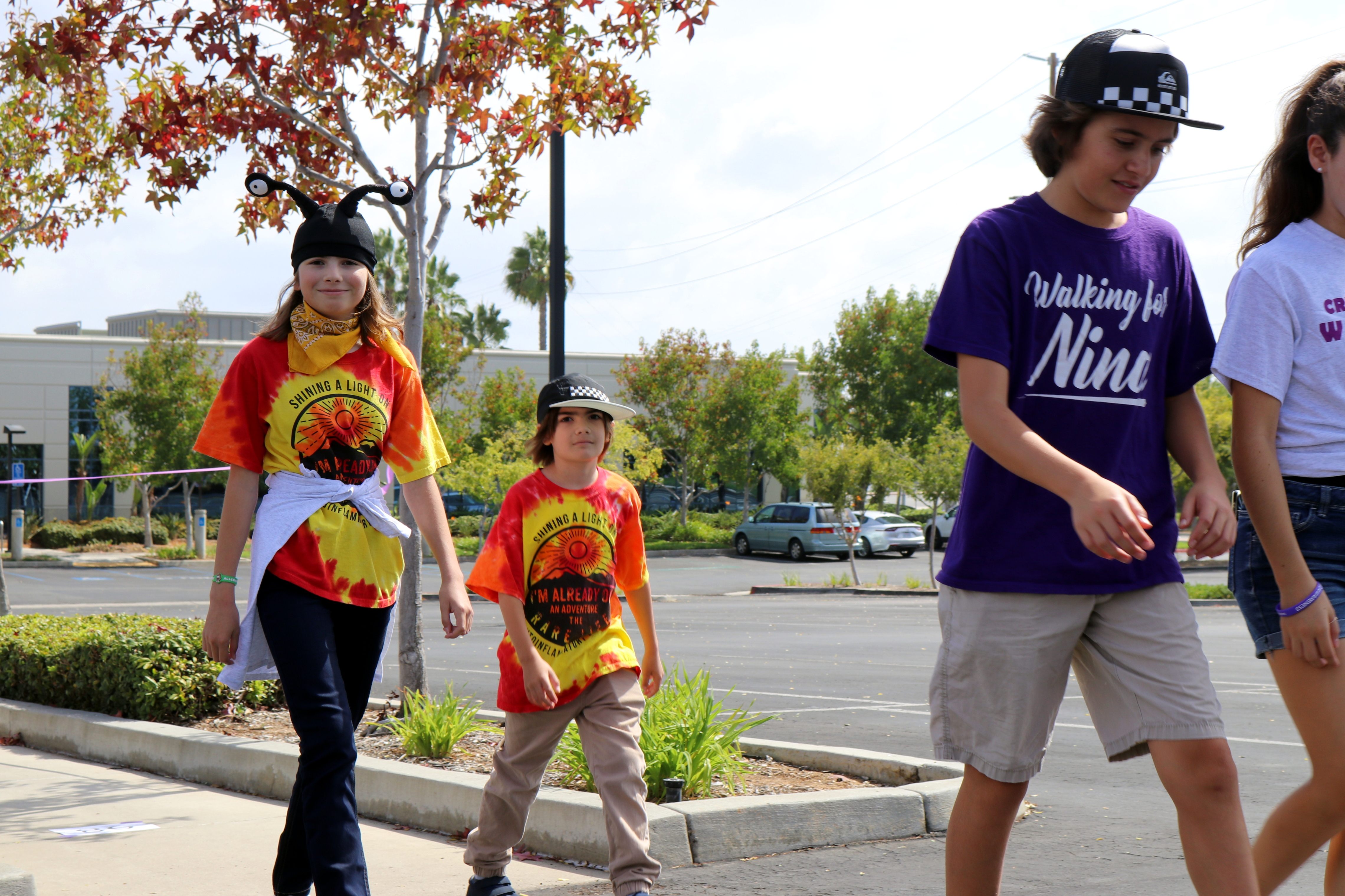 My granddaughter, California Vasquez, carries a mutation in the NLRP3 gene that codes for cryopyrin, a modulator of inflammation, a mutation she shares with her father and two brothers. Inflammation is the body's reaction to attack, producing the familiar pain, redness and swelling of infection. In that role, inflammation is a good thing. However, in persons such as Cali, the inflammation can be misdirected and result in an "auto-inflammatory disease." California has an un-named variant of Cryopyrin-Associated Periodic Syndrome, or CAPS that is only known to affect two families, producing fever, rash, joint pains and hearing loss among other symptoms. Other autoinflammatory diseases are more common, such as Chronic Recurrent Multifocal Osteomyelitis, or CRMO, which affects Kaila Mellos, the teen who founded Kaila's Komfort. October is CRMO-Awareness Month, so yesterday The Flying Lifeguards were honored to join a walk-a-thon benefiting Kaila's Komfort.