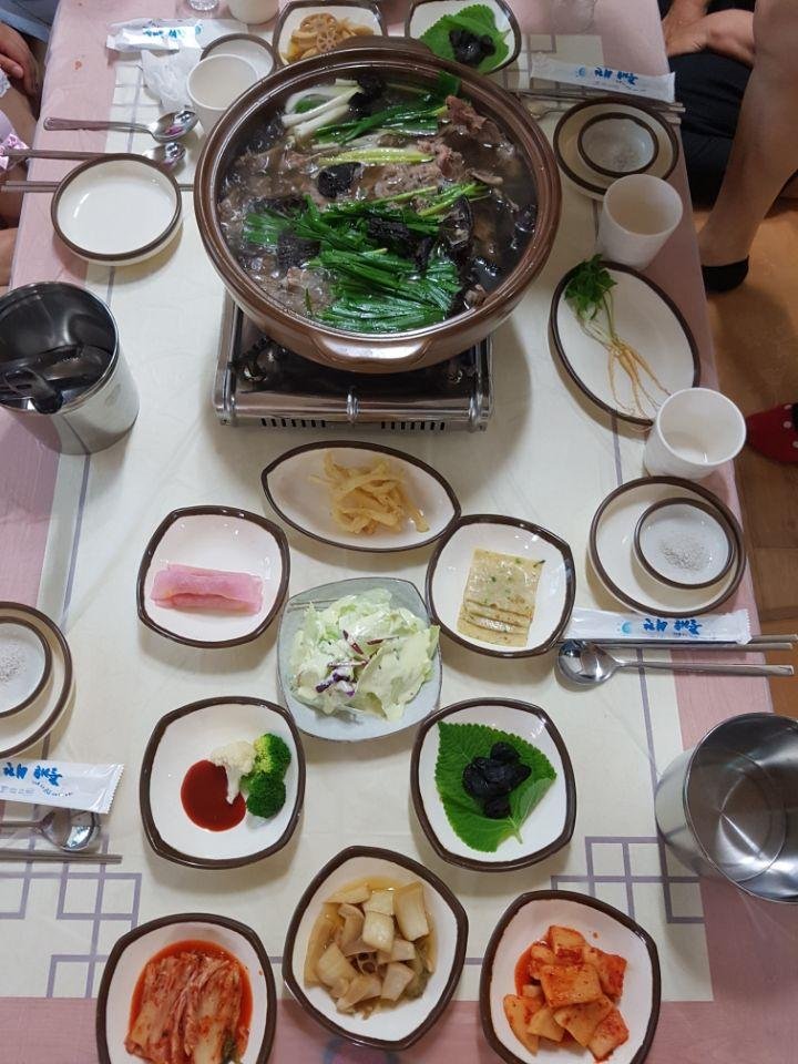 부추 들어간 오리백숙에 밑반찬까지..