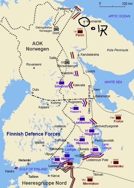 무르만스크 함락후 북해로 들어오는 보급을 핀란드군과 함께 끊어먹으며 남하.