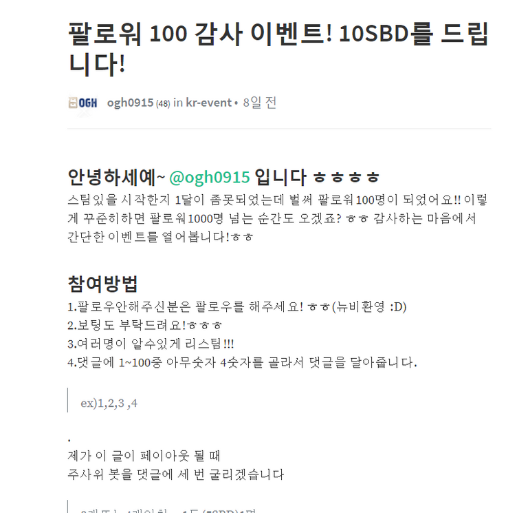저번주에 팔로워100명기념 로또같은 이벤트를 진행했었는데요.