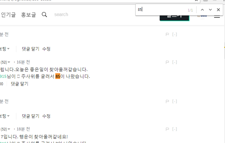 당첨자를 찾으러 (컨트롤+F) 로 찾은결과~