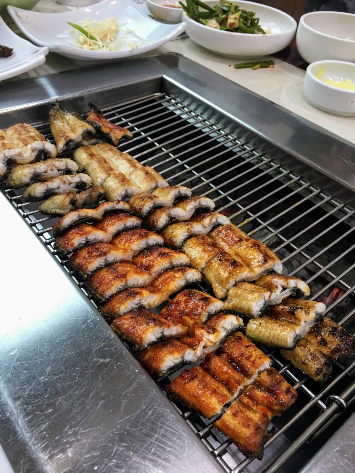 장어를 직접 구워서 먹는게 아니라, 이미 완전히 구워져 나온 장어를 먹는다. 초벌 구이가 아니라 가져다준 장어를 그 자리에서 바로 먹을수 있게 완전히 구워진채 제공된다.