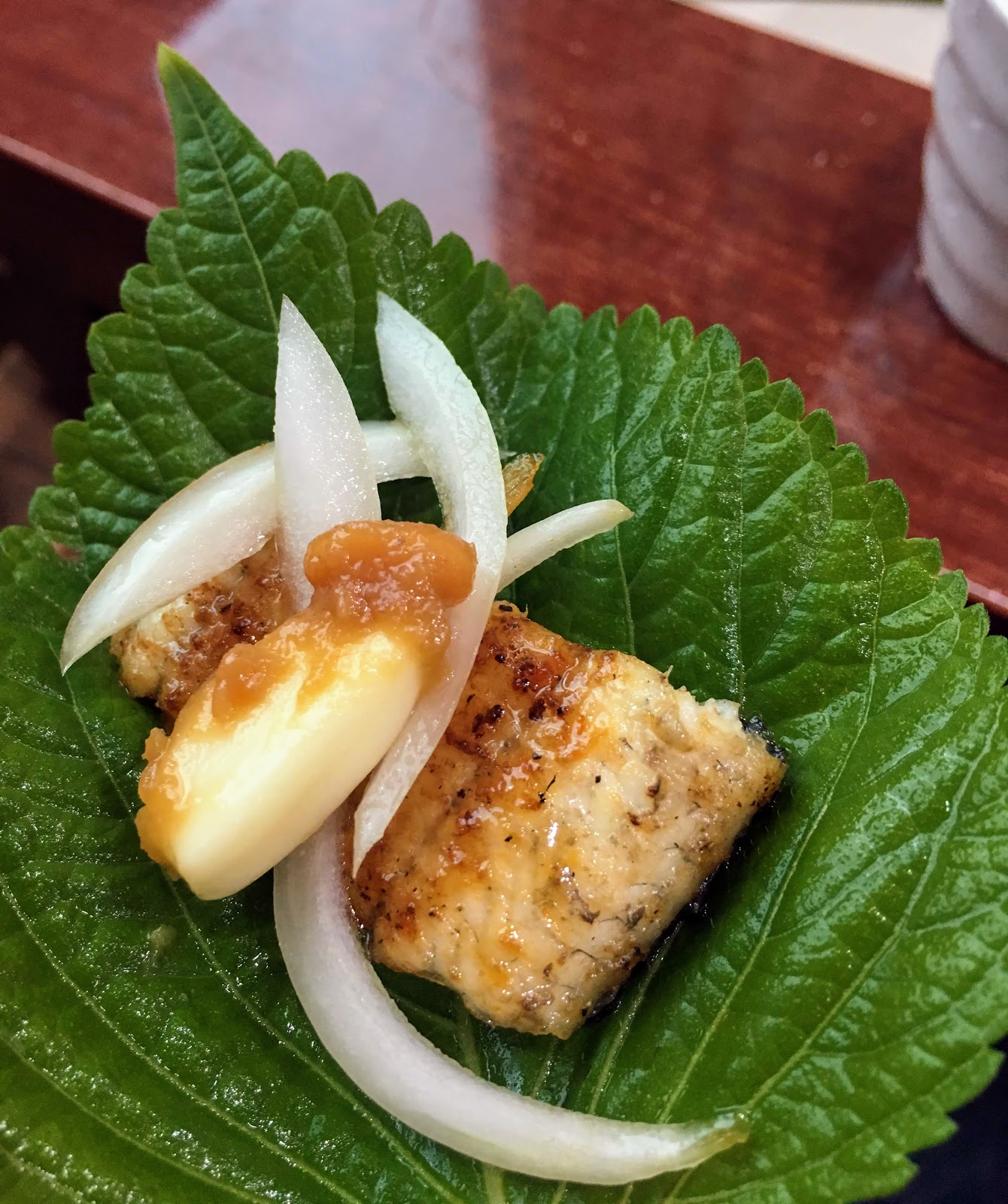 노릇하게 잘 익은 장어 한점을 깻닢에 올리고 마늘이랑 양파, 그리고 생강까지 소스에 잘 찍어서 한쌈 먹으면 어류를 별로 안좋아하는 나도 맛있게 먹을수 있을 정도다.