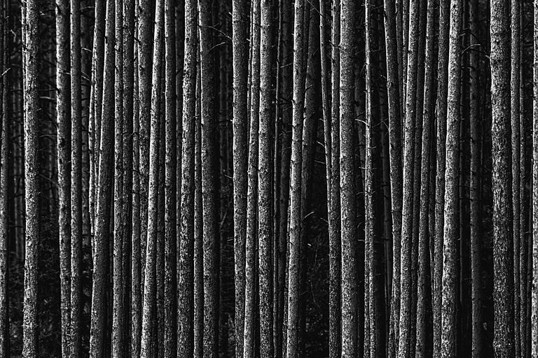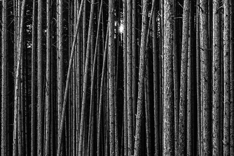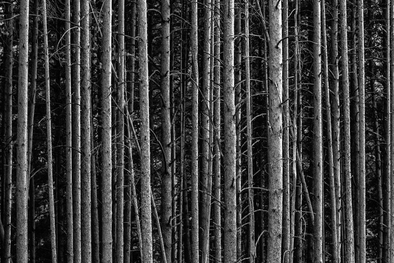 Going past the forest, I noticed how the pine trees are illuminated by the sun in the vicinity of the high-voltage power line and decided to take a picture.