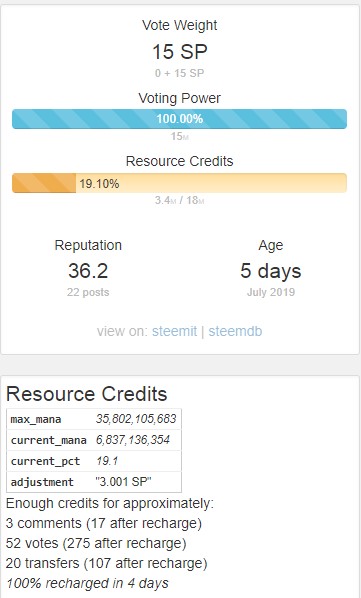 If you scroll down a bit, you can see exactly what you can do with the Resource Credits you have left. At the time I visited, you could only make 3 more comments before you would run out of RC.