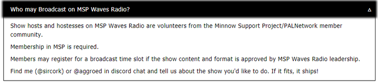 MSP Waves Radio presents a variety of shows covering a myriad of topics. All of the show hosts and hostesses are strictly volunteers, providing their time and content to the listening community purely out of the goodness of their little minnow hearts.