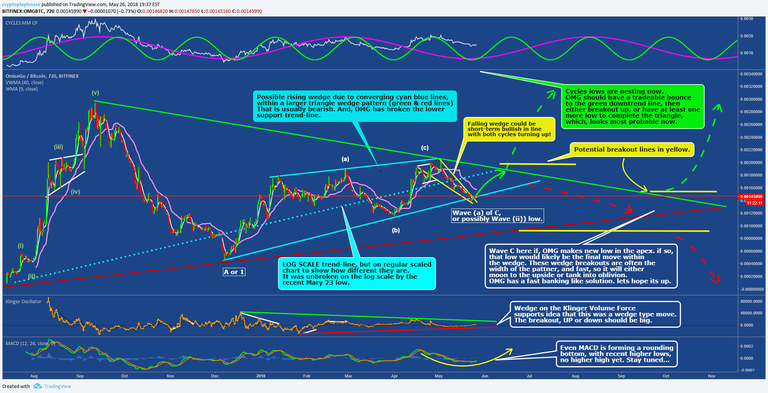 - If the breakout does not happen by the peak of the Pink cycle (Aug 10th), then OMG is very bearish , and the bigger triangle/wedge will likely end badly for OMG.