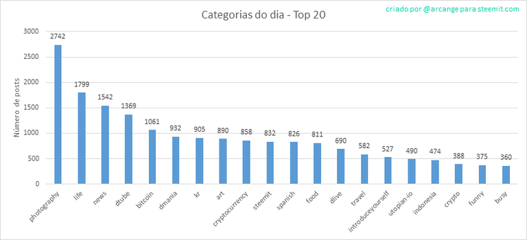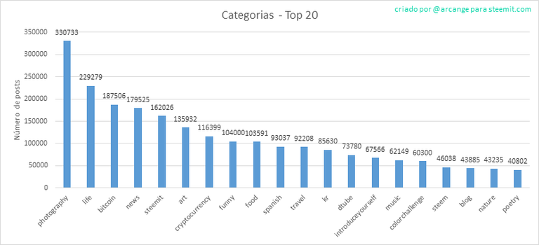 Este gráfico mostra as tag’s mais utilizadas para publicar postagens, desde o inicio do funcionamento da blockchain.