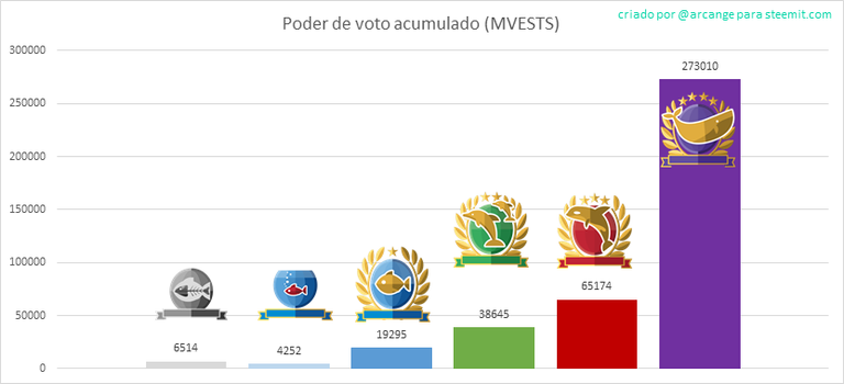 Este gráfico mostra a distribuição cumulativa de poder de voto. Assim podemos ver o total de poder de voto de cada level.