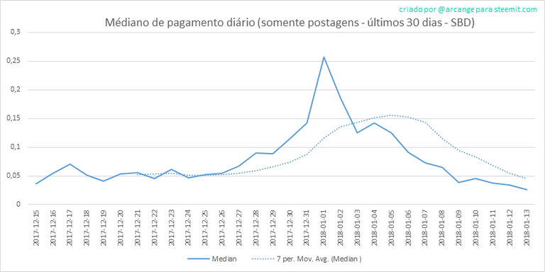 Este gráfico mostra a média de pagamentos por post nos últimos 30 dias.