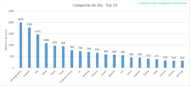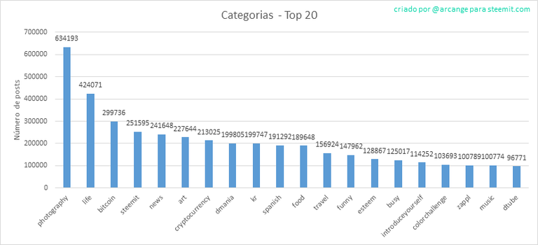 Este gráfico mostra as tag’s mais utilizadas para publicar postagens, desde o inicio do funcionamento da blockchain.