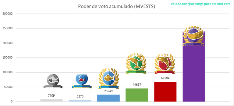 Este gráfico mostra a distribuição cumulativa de poder de voto. Assim podemos ver o total de poder de voto de cada level.