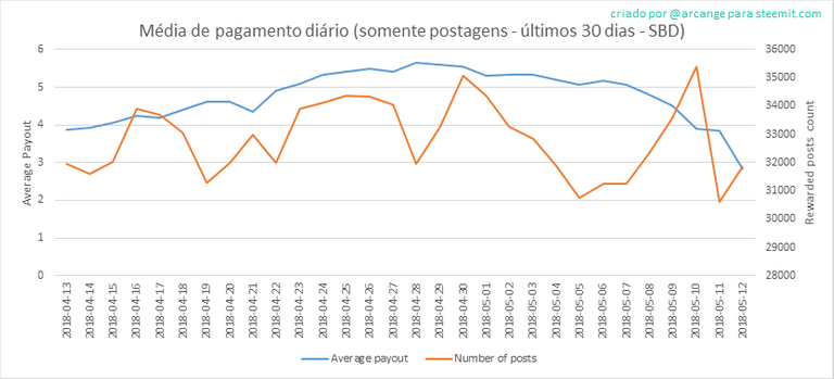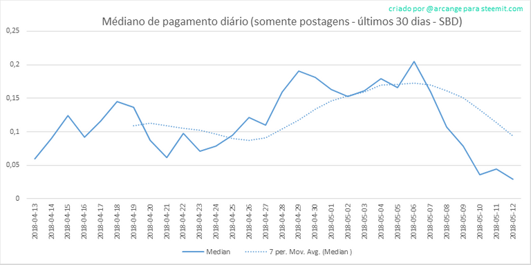 Este gráfico mostra a média de pagamentos por post nos últimos 30 dias.
