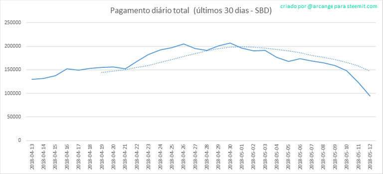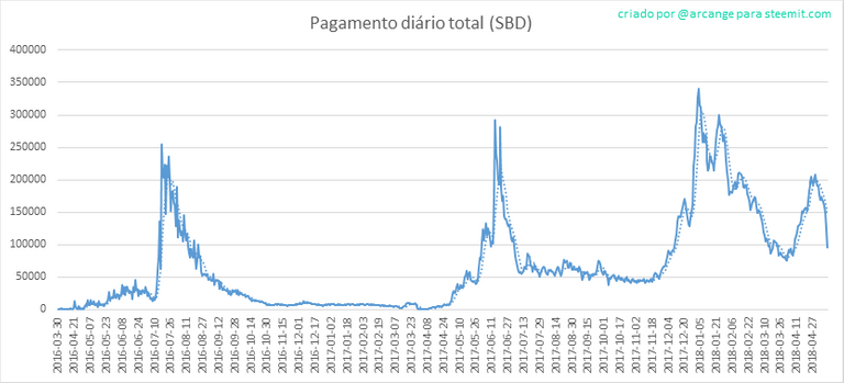 Este gráfico mostra o total de distribuicao de pagamentos (posts e comentários) por cada dia.