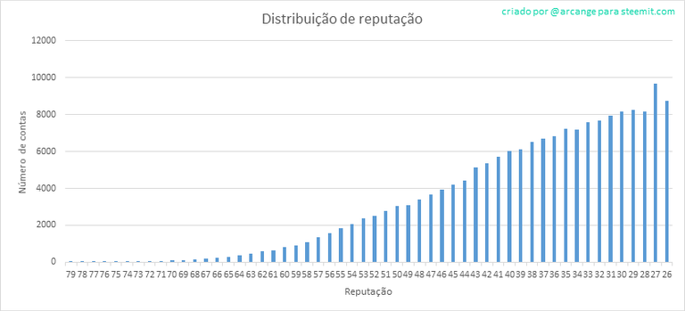 Este gráfico mostra a distribuição de reputação entre os usuários. Contas com reputação menor que 25 foram removidas do gráfico para melhor visualização.